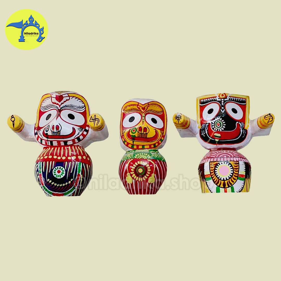 A4: Each idol is handcrafted by skilled artisans in Puri, Odisha — the holy seat of Lord Jagannath.